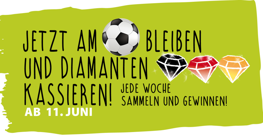 Mit deiner Abnahme am Ball bleiben und dafür jede Woche vom 11.Juni bis 13.Juli schwarze, rote und goldene Diamanten sammeln.
